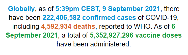 根据世卫组织最新实时统计数据,截至欧洲中部夏令时间9月9日17时39分(北京时间9月9日23时39分),全球累计新冠肺炎确诊病例222406582例,累计死亡病例4592934例。9日全球新冠肺炎确诊病例新增569073例,死亡病例新增9213例。(总台记者 朱赫)