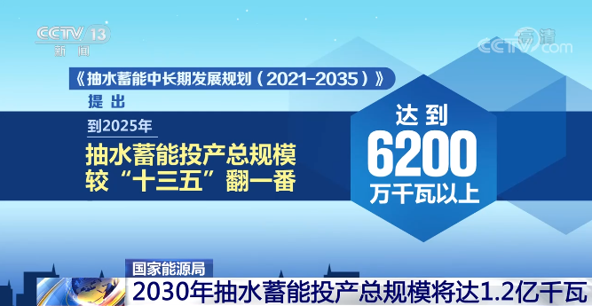 国家能源局近日发布《抽水蓄能中长期发展规划(2021-2035)》,提出到2030年,抽水蓄能投产总规模将达到1.2亿千瓦。