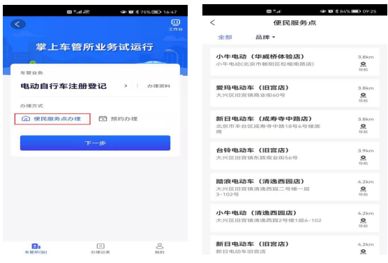 3、选择“便民服务点办理”后,可查询就近便民服务点地址。便民服务点可办理同品牌车辆登记上牌,无须预约。