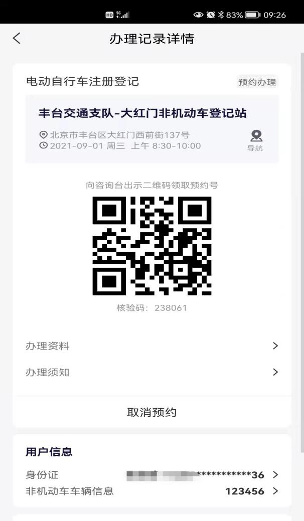 6、预约成功后,办理时需出示预约凭证供工作人员扫码核对。