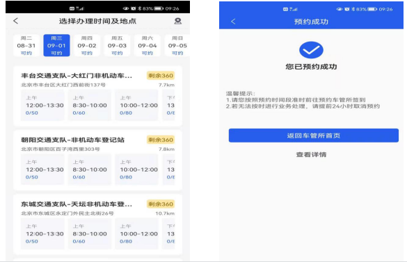 针对此情况,交管部门于9月11日(周六)起,在北京市各交通支(大)队非机动车登记站启动电动自行车注册登记预约办理工作。提示广大电动自行车车主:9月11日后办理电动自行车登记上牌业务,请提前通过“北京交警”APP进行在线预约,合理选择办理时段和站点,以最大限度地节省办理时间。