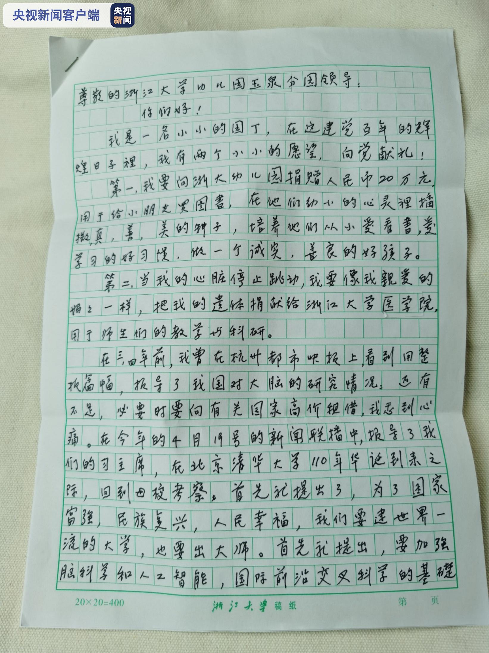 9月1日上午,浙江大学幼教中心玉泉分园园长王勍接到了退休老师程凤兮老人的电话,在电话里,程老师说自己写了一封信想念给园长听。王勍的第一反应是,老人可能想在教师节到来之际给同行晚辈们送祝福,于是在征得老人的同意后开启了手机的录音键。当程老师声情并茂地念完了自己的信,王勍被感动哭了↓↓↓