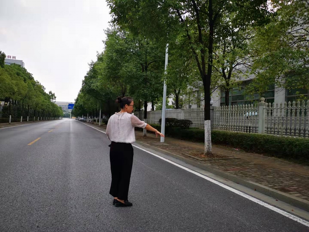李某平介绍案发地点,当晚就是在这条马路边跳车,警方曾多次到此进行现场模拟实验。本文图片 澎湃新闻记者 朱远祥