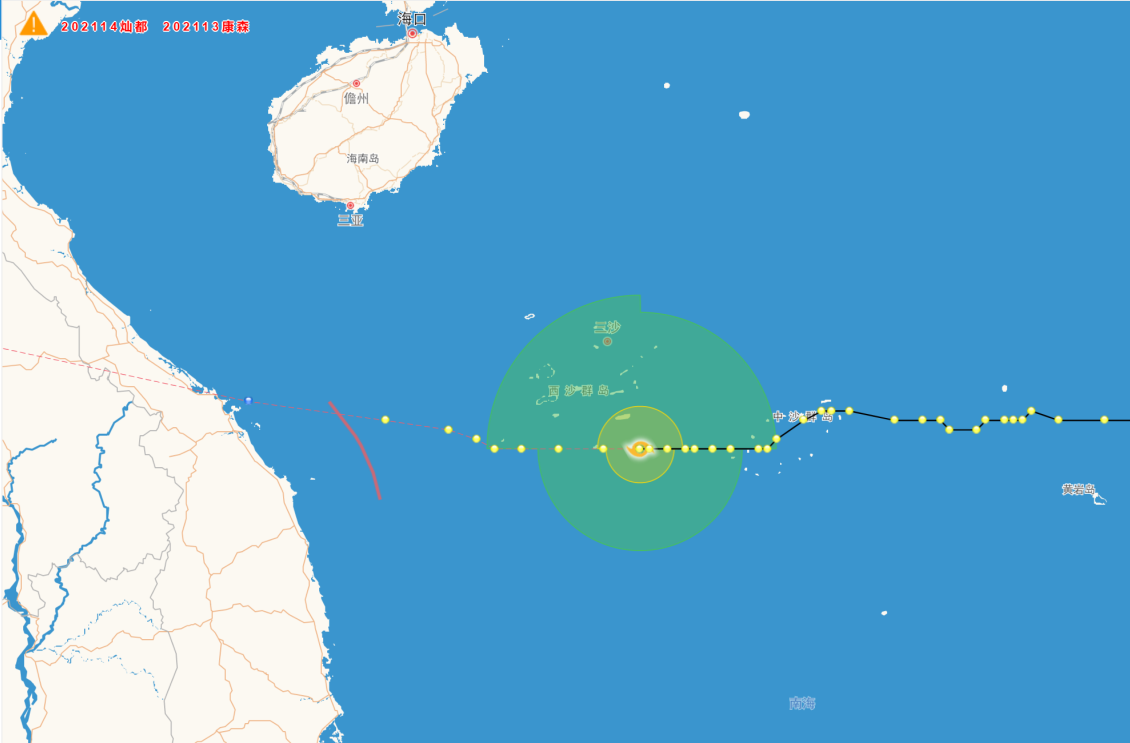 总台记者从海南省气象台了解到,今年第13号台风“康森”(强热带风暴级),10日8时其中心位于北纬15.7度、东经112.8度,也就是在距离海南省三沙市(西沙永兴岛)东偏南方向约135公里的海面上,中心最大风力10级(28米/秒),中心最低气压982百帕。预计,“康森”前期将在西沙群岛附近海面回旋摆动,12日以后转向偏西方向移动,逐渐向越南中部一带沿海靠近,强度略有增强。海南省气象局10日6时30分继续发布台风四级预警。