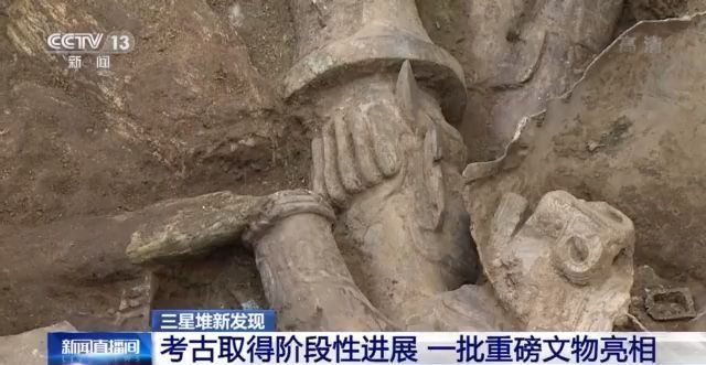 总台央视记者任梅梅:这里是三星堆遗址祭祀区考古大棚,昨天首露全貌的8号坑,一批重磅文物全新亮相。