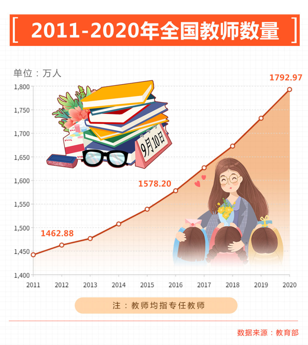 今年9月10日是我国第37个教师节。在这个感念师恩的特殊日子,让我们从数据里感受“教师”二字的分量。