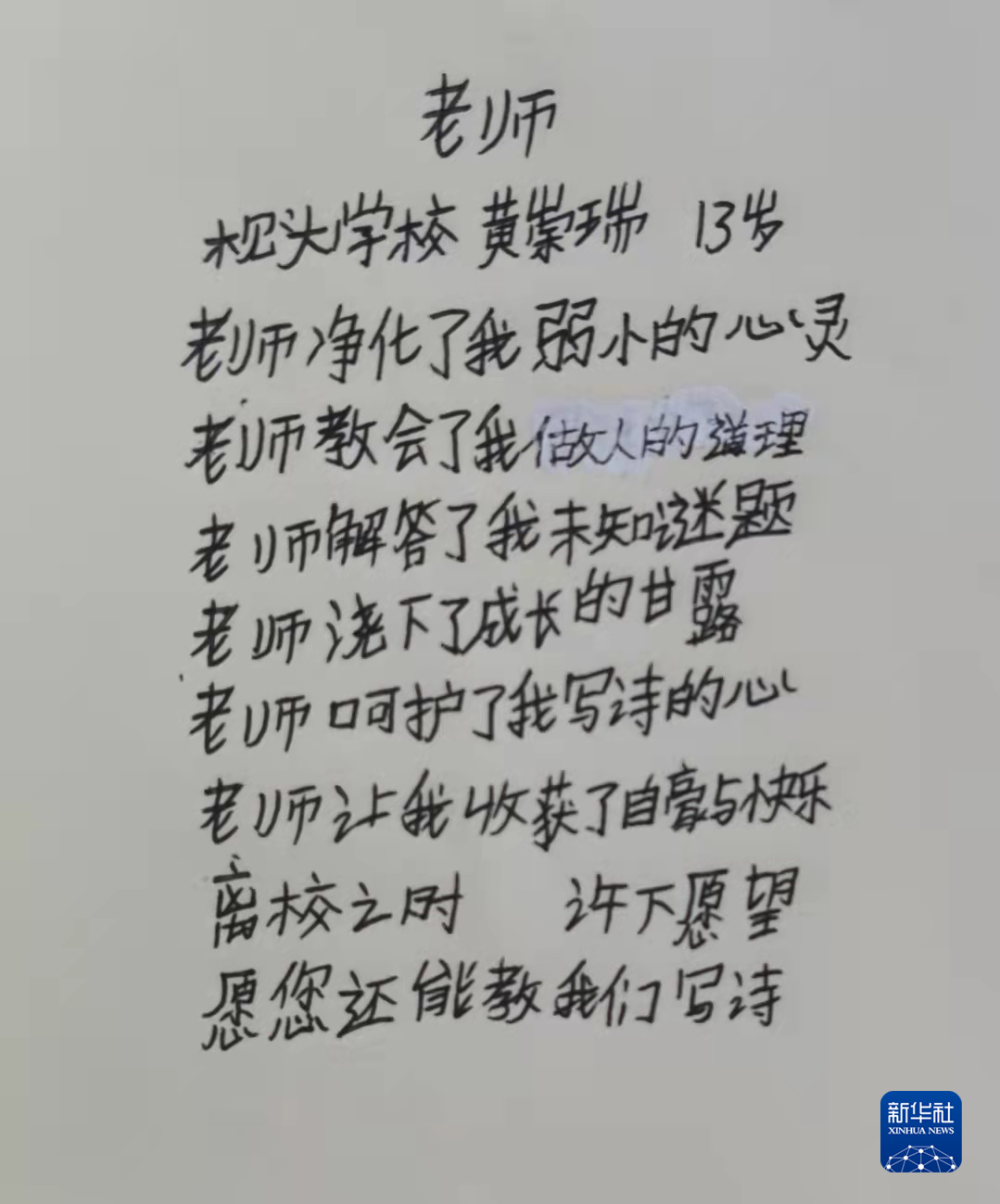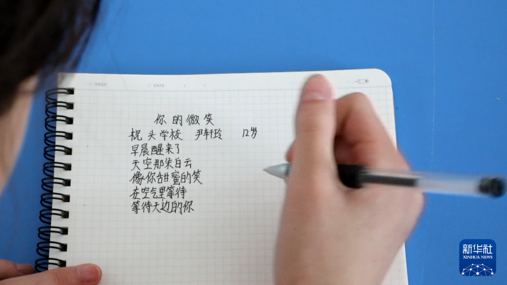 班上一位心思细腻的女孩写下小诗《你的微笑》。