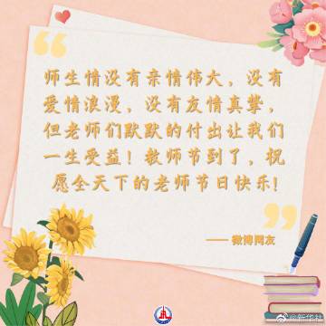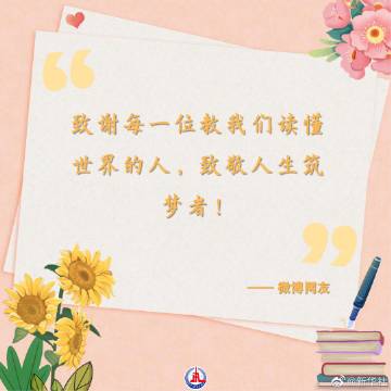 【送上#对老师的一句话祝福#】老师,一个平凡的称谓,一生不平凡的使命。是老师教会我们描绘梦想,读懂世界,感谢成长路上一直有你们!师恩似海深,祝福的话儿暖人心,今天,让我们一起向老师表白,#致敬每一位平凡而伟大的老师#!(设计 张超帆)