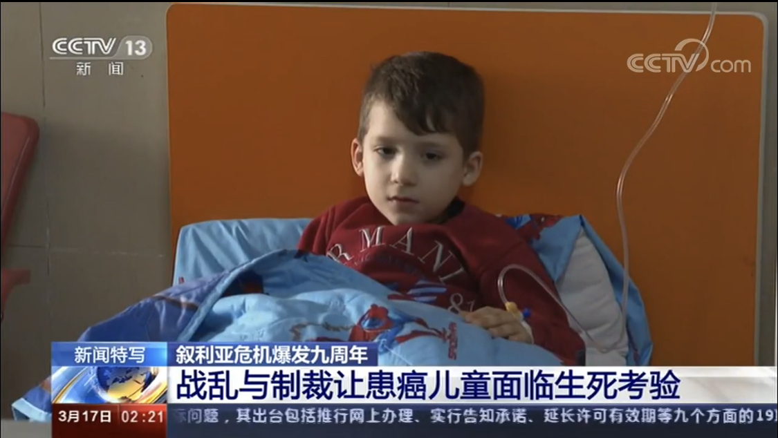 总台记者曾于2019年末到叙北部阿勒颇市的一所癌症儿童救助中心探访,那里的医生告诉记者,因为没有足够的抗癌药物,很多患癌儿童不得不延长服药或注射针剂的时间间隔。“我治疗过一个孩子,因为药剂短缺,治疗被耽误了三个月,我们在黑市上都找不到药,这个孩子的病情因为缺药出现了反复,本来存活的概率有百分之七十,后来降到百分之三十了”,儿童救助中心医生艾洛瓦义德说,像这样的医疗案例比比皆是,在拿不到药的危急关头,他也只能眼睁睁地看着他亲手救治的孩子死去。