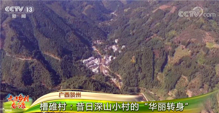 央视网消息:我带大家走进的是广西贺州市平桂区槽碓村,目前,总台记者廖汨已经在村子里。今年2月,槽碓村被授予“全国脱贫攻坚先进集体”荣誉称号。从破旧小山村蜕变成广西乡村振兴示范点,这“一步跨千年”的巨变就是在短短几年间实现的。现在我们就先和廖汨一起走进槽碓村。