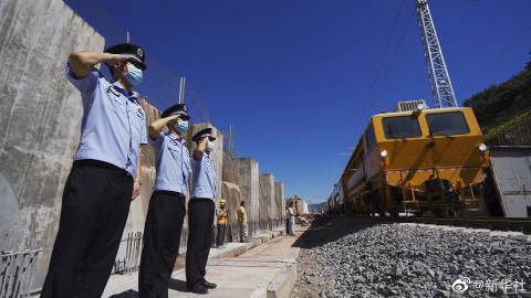 【#中老磨憨铁路口岸临时开放#旨在加快中老铁路建设】为加快中老铁路建设,中老磨憨铁路口岸经批准临时开放,仅允许与中老铁路建设相关人员、物资、设备、列车出入境,直至中老铁路正式开通。9月10日上午,载有中老铁路建设物资、设备的列车驶入站台,经磨憨边检站铁路口岸执勤队检验核对人员信息和检查车体、车载物资设备后,驶入中老友谊隧道。中老铁路连接中国昆明和老挝万象,于2016年12月全面开工,计划2021年12月建成通车。建成通车后,昆明市至景洪市仅需3个多小时,至老挝万象有望实现当日通达。(记者庄北宁)
