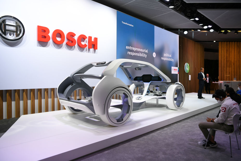 9月6日在德国慕尼黑举办的德国国际汽车及智慧出行博览会媒体日期间拍摄的博世展台。(新华社记者逯阳摄)