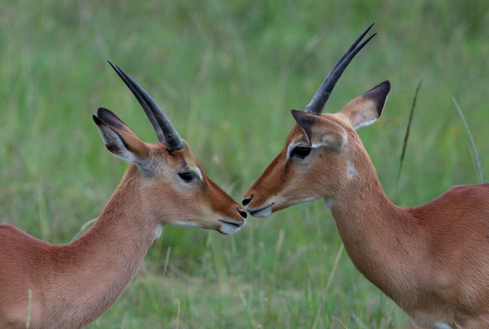 5月19日在肯尼亚内罗毕国家公园内拍摄的两只瞪羚。(新华社记者龙雷摄)
