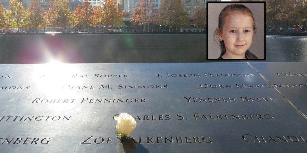 “2001年9月11日,我放学回到家里。没过多久,一个朋友给我打电话,他说我们的一个共同的朋友当天就在美国航空77号航班的飞机上,那架飞机随后撞向了五角大楼。她的名字叫佐伊·法尔肯博格,那时8岁。”
