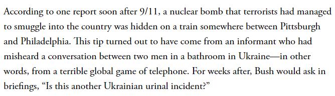 时任美国联邦调查局局长詹姆斯·科米事后(James Comey)透露,原本需要层层过滤再汇总到联邦调查局局长手中的恐袭线索,在“9·11”事件后,都直接呈递给美国总统,其中不少情报都是道听途说、子虚乌有。而正是这些“杯弓蛇影”的大量虚假信息,让当时的美国政府高层错误判断了形势。最终促使美国发动了这场“反恐战争”。