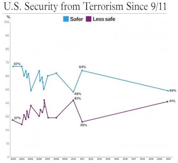 △美国民众对“9·11”事件发生后,美国安全环境变化的反馈(图片来源:美国广播公司)