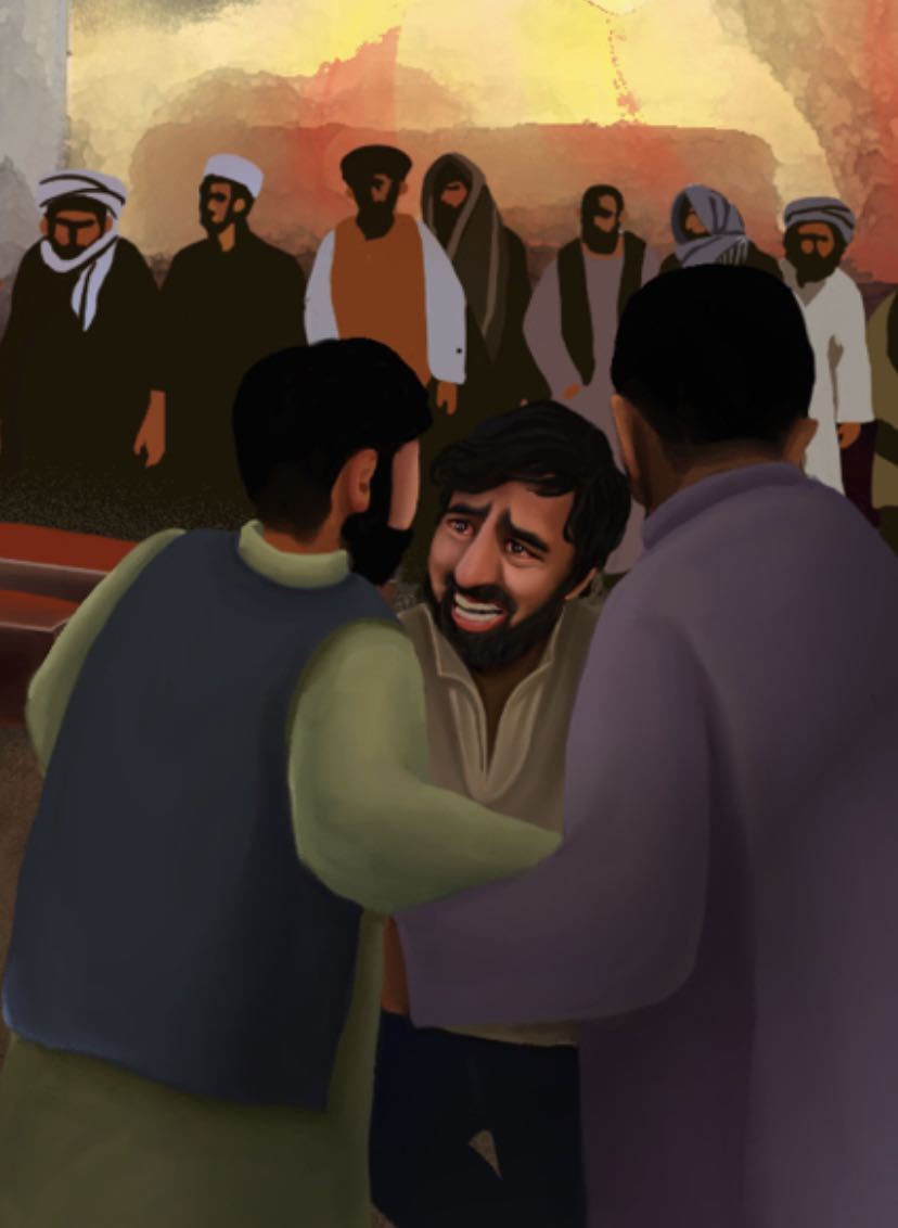 这张基于新闻事实的漫画,描绘了阿富汗一场不同寻常的葬礼,经新华社海外社交媒体账号播发后,令许多海外网友唏嘘泪目。