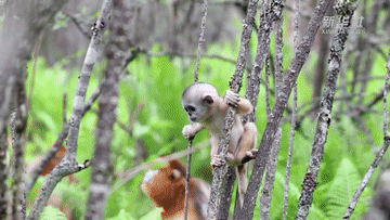 在“华中屋脊”湖北神农架,金丝猴嬉闹玩耍。