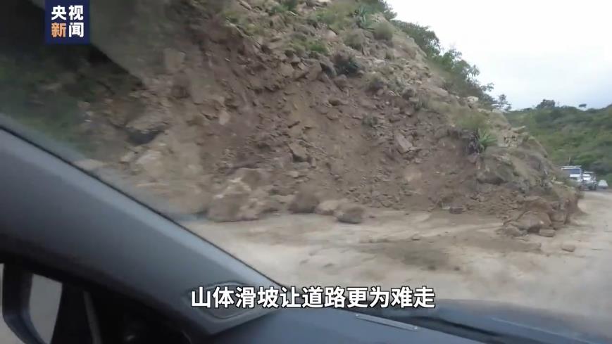 总台报道员发现,山体滑坡让附近道路更加难走。民众不得不堵在路上希望引起政府关注。