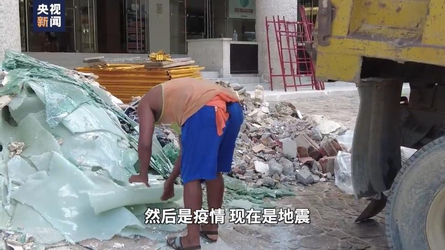 当地灾民凯莉·加琳告诉总台报道员,第一次地震发生时,她正在街上。她看到房子并没有倒塌。第二次地震最为强烈,房子就完全倒了。