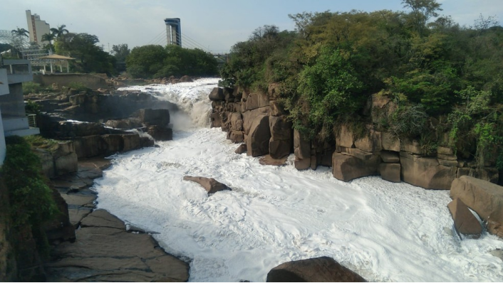 当地时间9月11日,流经巴西圣保罗州萨尔托市的铁特河河面上突然漂起白色泡沫。专家表示,泡沫为未经处理的化学品和圣保罗城市污水的混合物,为有毒物质。