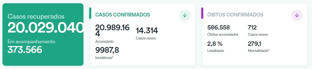 截至当地时间9月11日19时10分,根据巴西卫生部发布的数据,巴西累计新冠肺炎确诊病例20989164例,较前一日新增14314例;累计死亡病例586558例,较前一日新增712例。累计治愈病例20029040例。