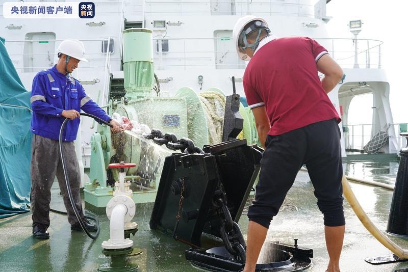 今天上午8时30分,“实验6”综合科考船船员收锚备航。上午9时整,“实验6”综合科考船再一次乘风出发,驶向深蓝。