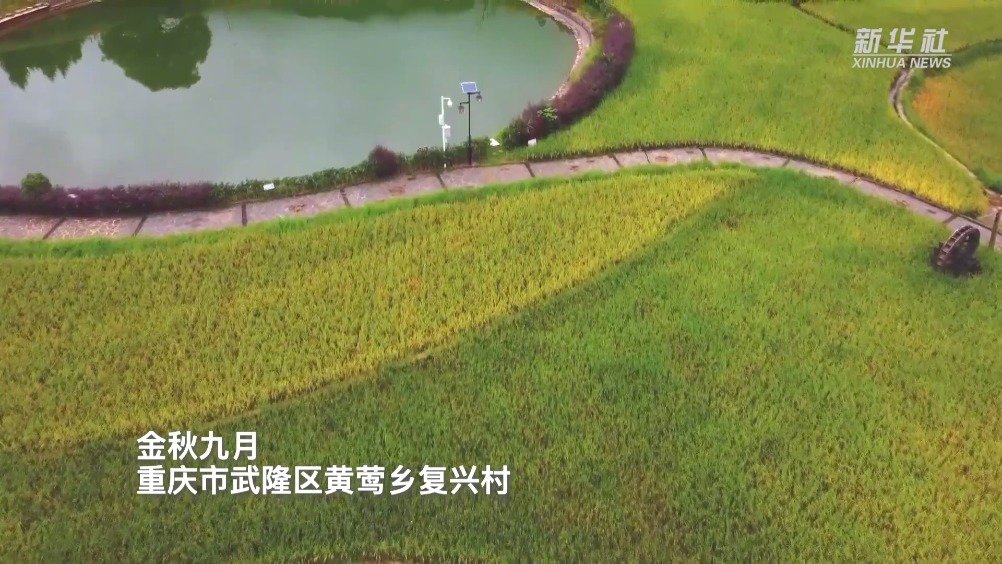 【#重庆武隆稻香十里秋意浓#】秋风起,稻花香,重庆市武隆区黄莺乡复兴村的水稻即将迎来收割。高低错落的梯田里,稻浪翻滚,遍地绿黄,从空中俯瞰宛如一幅美丽的山水田园画卷。 新华社的微博视频