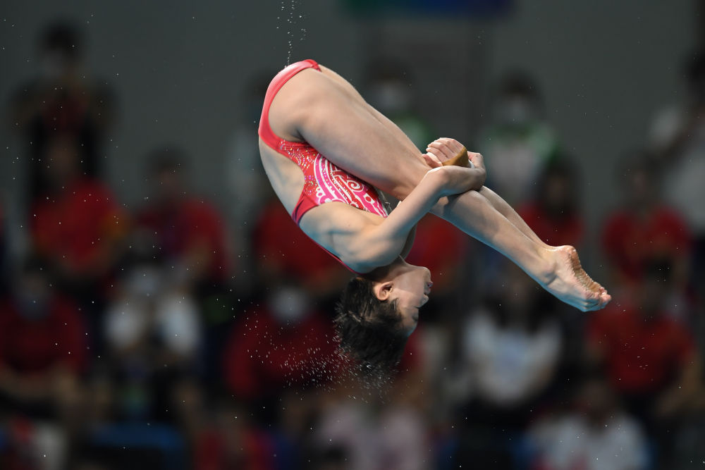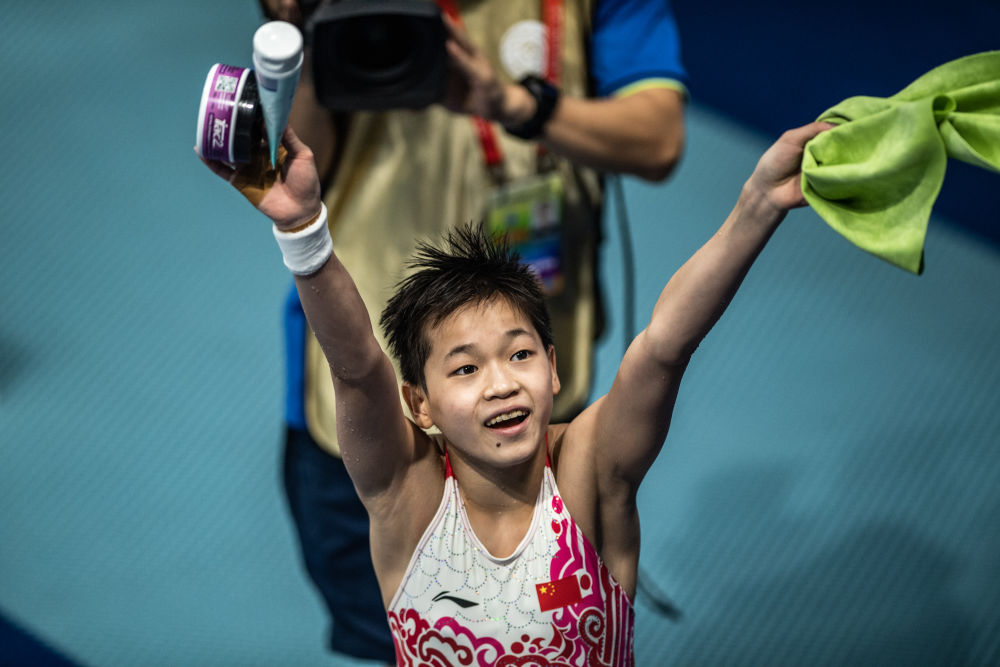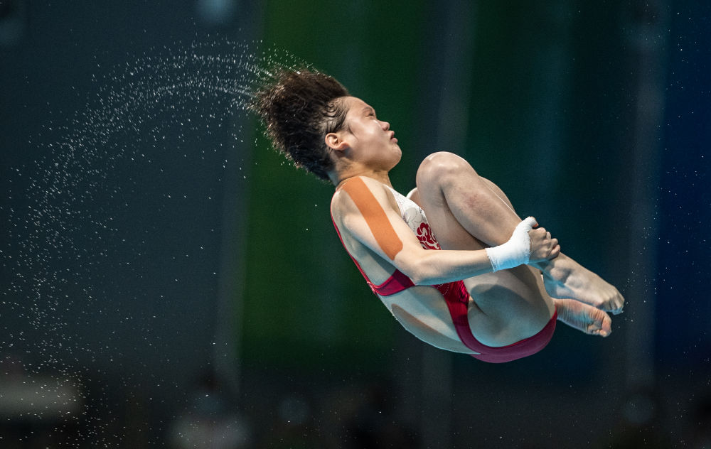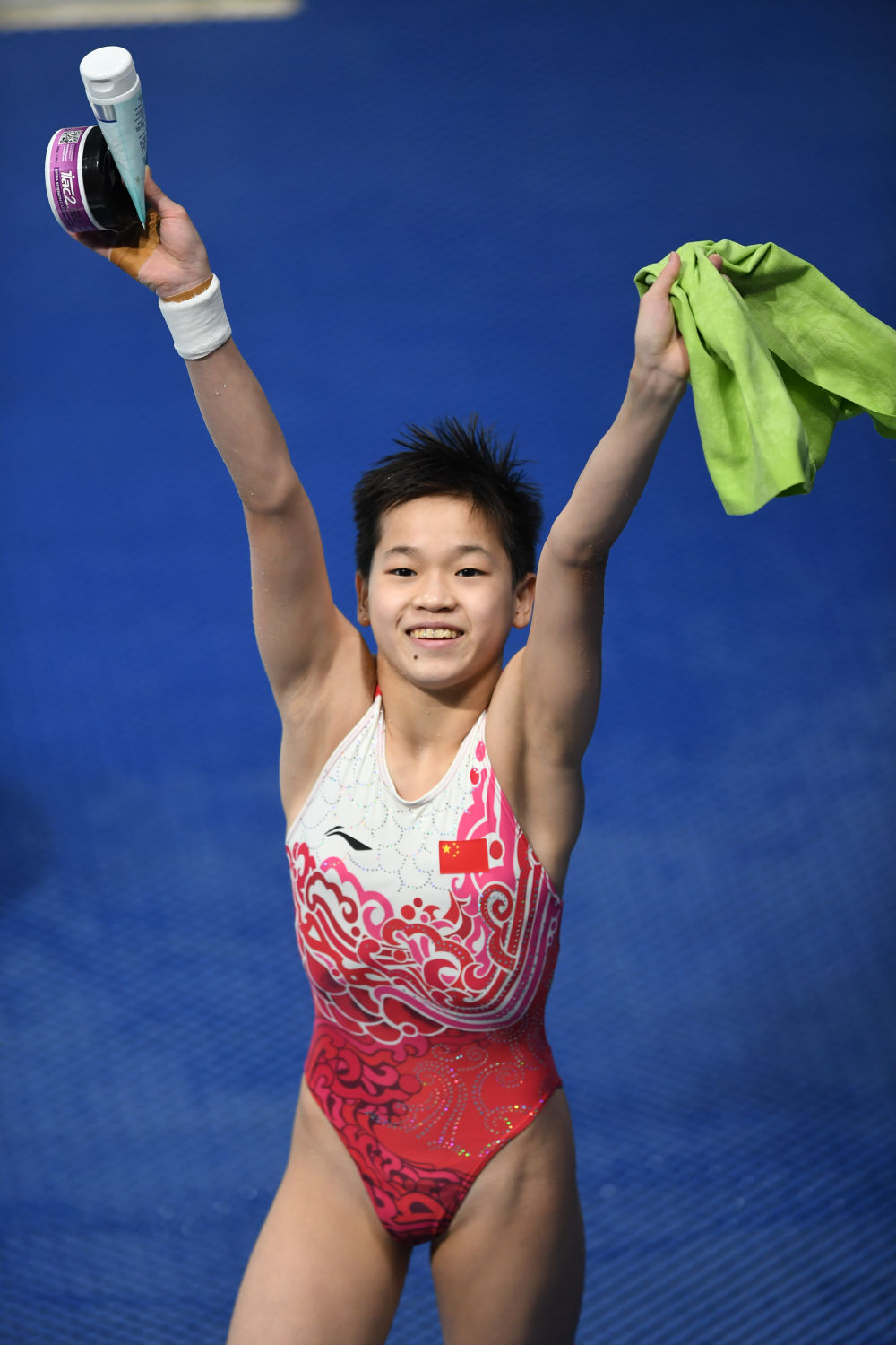 ↑广东队选手全红婵在比赛中,她以419.25分的总成绩获得冠军。新华社记者 薛宇舸 摄