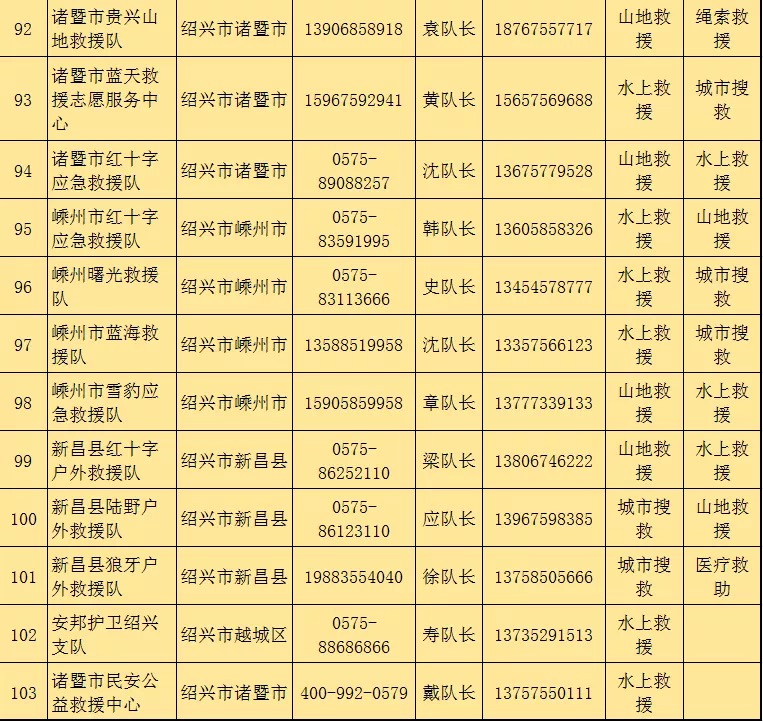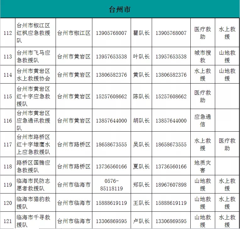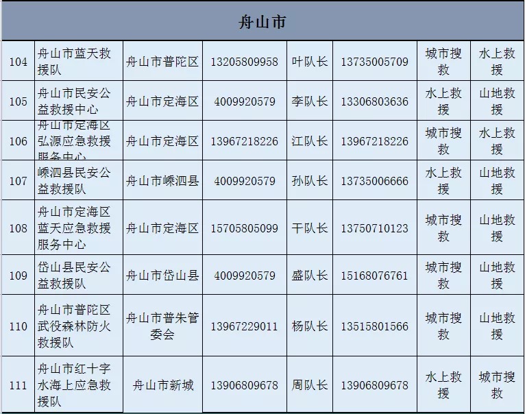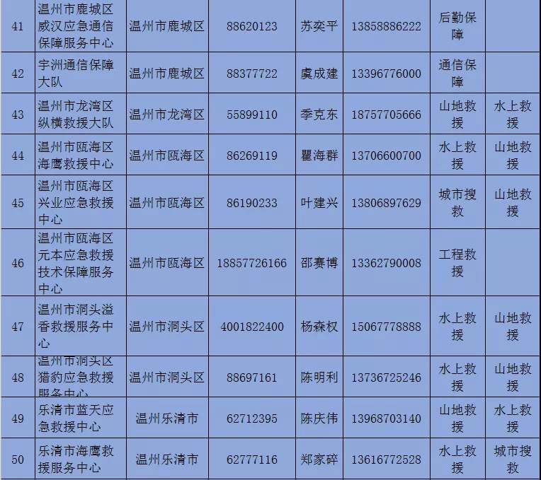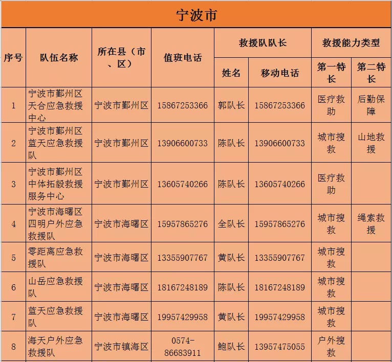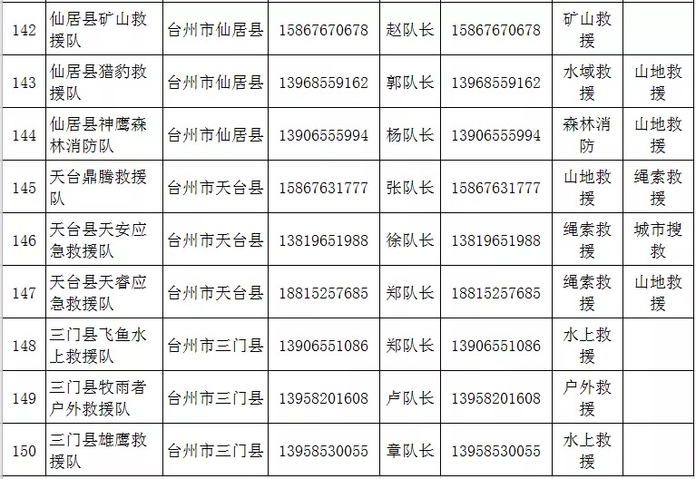 浙江省防指办(省应急管理厅)和宁波、舟山、嘉兴、绍兴、台州、温州市防指办(市应急管理局)今天对外公布150支社会应急力量电话,若您身边有人需要紧急救援,可拨打以下电话。