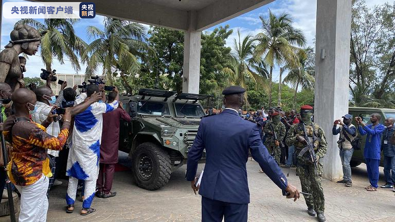 △西共体代表团前往几内亚首都科纳特里调解(总台记者韩蓄摄)