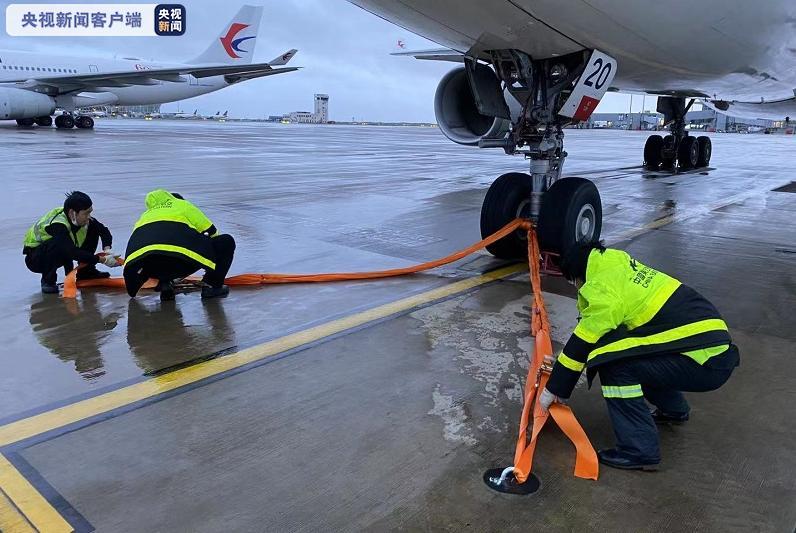 △工作人员正在系留飞机