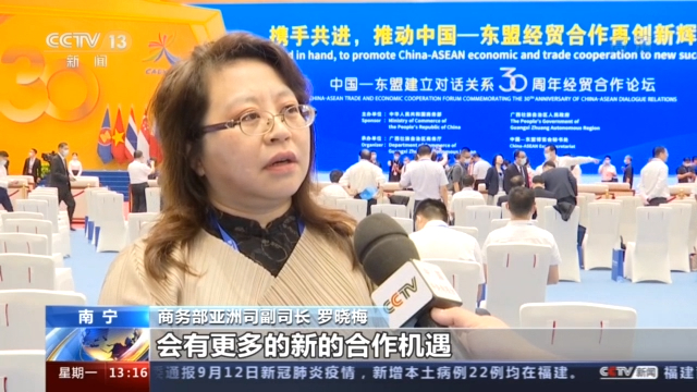 商务部亚洲司副司长 罗晓梅:我们与东盟国家将在制造业、农业、基础设施、高新技术、数字经济、绿色经济等等领域,会有更多的新的合作机遇,共同构建更加紧密的中国-东盟命运共同体。