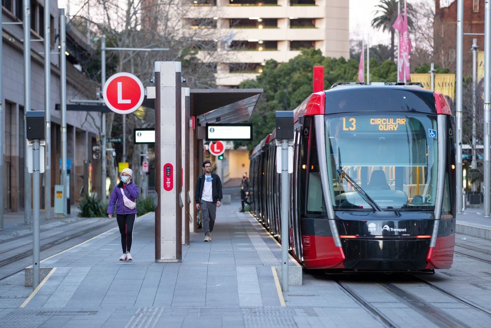 8月20日,乘客走在空荡的澳大利亚悉尼轻轨站。(新华社记者白雪飞摄)