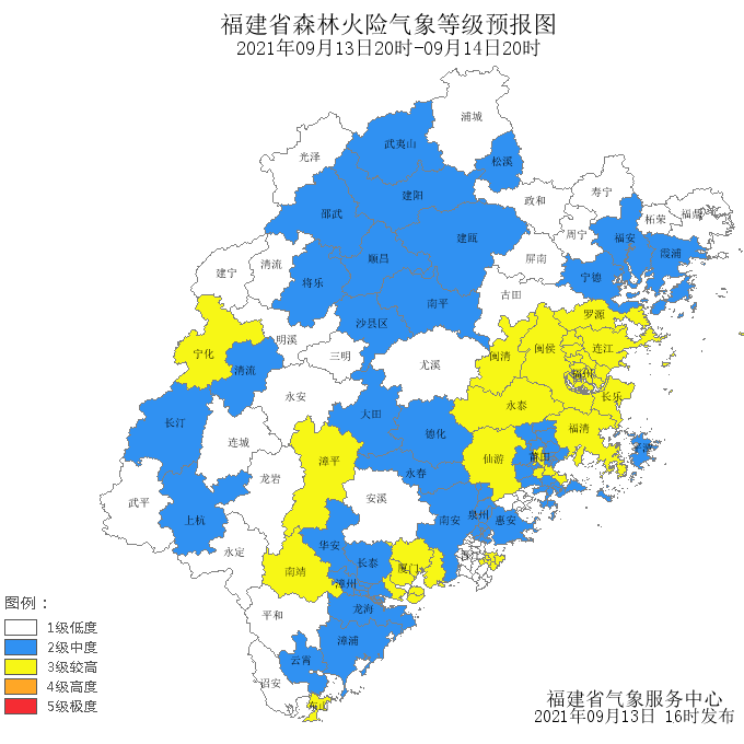 今天晚上到明天白天,福州市、厦门市、莆田市的森林火险气象等级为较高危险(三级)。