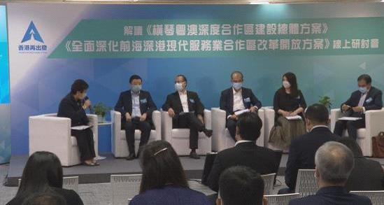 13日, “香港再出发大联盟”举办研讨会。就日前出台的《横琴粤澳深度合作区建设总体方案》(简称“横琴方案”)及《全面深化前海深港现代服务业合作区改革开放方案》(简称“前海方案”)进行深度解读和探讨。研讨会邀请了来自内地、香港和澳门政府部门,工商界、学术机构等各界专家代表,就刚出台的两个方案展开讨论,建言献策。