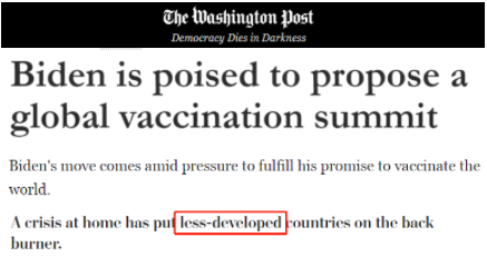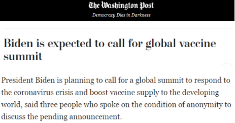 用《华盛顿邮报》的话说,拜登有关召开全球抗疫峰会的考虑是在各方敦促其履行为“全球接种疫苗”承诺的压力下做出的,因为他的种种表现已经把欠发达国家放到了疫苗全球战略的次要位置。