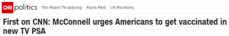 △美国有线电视新闻网(CNN):米奇·麦康奈尔在电视上投放广告鼓励大家接受疫苗。