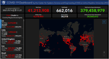 △约翰斯·霍普金斯大学最新疫情数据截图