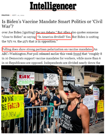美国《情报员日报》以《拜登疫苗政策是“聪明政治”还是‘内战导火索’》为题发文指出,民调结果“确实显示”,美国社会对拜登疫苗强制令的反应呈现出强烈的党派极化特征。