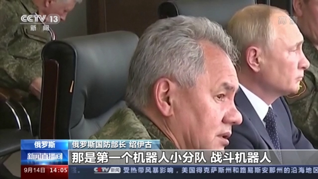 俄罗斯国防部长 绍伊古:你可以看到橙色的圆圈,那是第一个机器人小分队,战斗机器人,他们都配有重型装备,这些机器人非常(厉害),其控制的长度可达三公里。