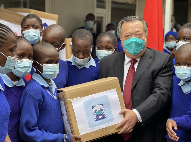在当天的仪式上,肯中经贸协会会长单位-中国路桥也向学校捐赠了超过12万肯尼亚先令(约合人民币7000元)的防疫物资,这是自疫情以来肯中经贸协会第四次向北京学校捐赠,捐赠总额超过120万肯尼亚先令(约合人民币70000元)。(总台记者 田超颖)