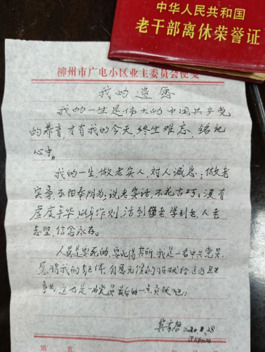 △宾香悟老人的女儿宾斌签署遗体器官志愿捐献书。