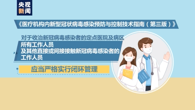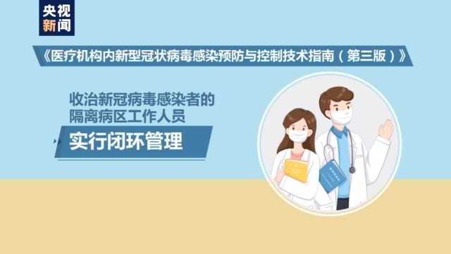 指南要求,对参与相关诊疗工作人员要加强管理,必要时,可集中封闭管理。收治新冠病毒感染者的隔离病区工作人员实行闭环管理。
