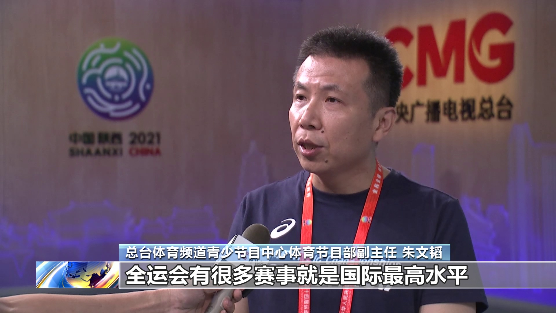 总台体育频道青少节目中心体育节目部副主任 朱文韬:全运会有很多赛事就是国际最高水平,除了这个高水平的竞技项目以外,我们还要关注全民健身,这次有几个群众体育的项目我们也有直播信号,同样会呈现给电视观众。