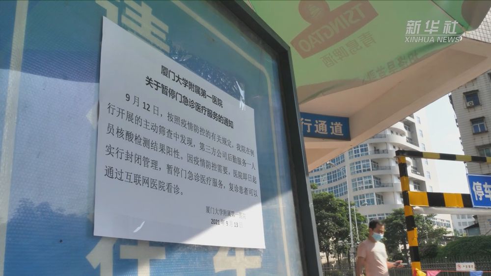 9月12日,厦门大学附属第一医院在例行开展的主动筛查中发现,一位后勤服务人员的核酸检测结果为阳性。随后,医院实行封闭管理,暂停急诊门诊服务。