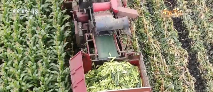 鲜食玉米的生长期大约为90天,比普通玉米的生长期短,它的口感甜、黏、糯,我们日常直接食用的很多都属于鲜食玉米。要想保证鲜食玉米的良好口感,在不同的生产环节有很多时间上的要求,比如说在鲜食玉米成熟后,必须在7天之内进行采摘,采摘后的鲜食玉米必须要在6个小时内完成加工等等。通过不断地探索钻研,当地的种植户将国产普通玉米收割机进行了改装,保留着玉米棒外层玉米叶,这层外叶对玉米起到了很好的保护作用,也大大提高了其保鲜程度。