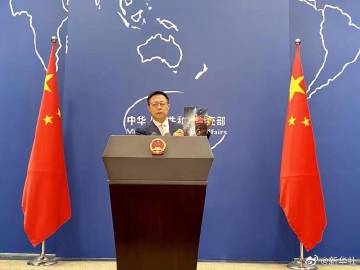 赵立坚随后展示了一幅新闻漫画《两岁“恐怖分子”的葬礼》,并表示,这张基于新闻事实的漫画,描绘了阿富汗一场不同寻常的葬礼,经新华社海外社交媒体账号播发后,令许多海外网友唏嘘泪目。