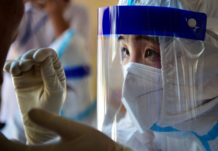 9月12日,在莆田市仙游县鲤城街道坝垅社区操场,市民接受核酸检测采样。新华社记者 魏培全 摄