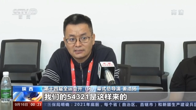 第十四届全运会开(闭)幕式总导演 姜浩扬:我们的54321是这样来的,五既是五谷丰登,也是我们的五,然后四,是四海同庆,三是三秦大地,两个百年。最后一句话是最重要的一句话,是万众一心。